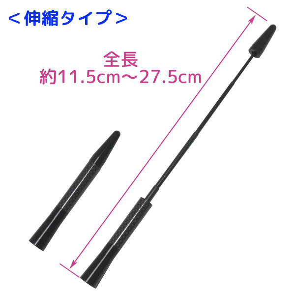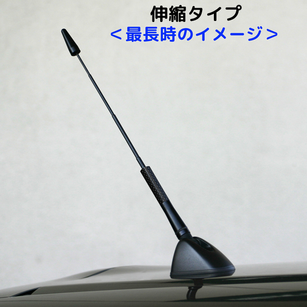 純正交換タイプのカーボンルーフアンテナです。 アンテナ取り付けネジ径が5mmと6mmに対応します。 (変換ネジ5mmショート・5mmロング・6mmショート・6mmロングとブラックのスぺーサーリング・ゴムリングを付属しております。) ブラックカーボン製で、付属のスペーサーリング(5mm)を含まない長さは60mm・80mm・100mmの3サイズと伸縮タイプがございます。 伸縮タイプの全長:約11.5cm〜27.5cm FM/AMアンテナ機能付き。(山間部やビル付近など電波状況によっては 感度が低下する場合がございます。) 60・80・100mmはヘリカル方式アンテナを採用しております。 |